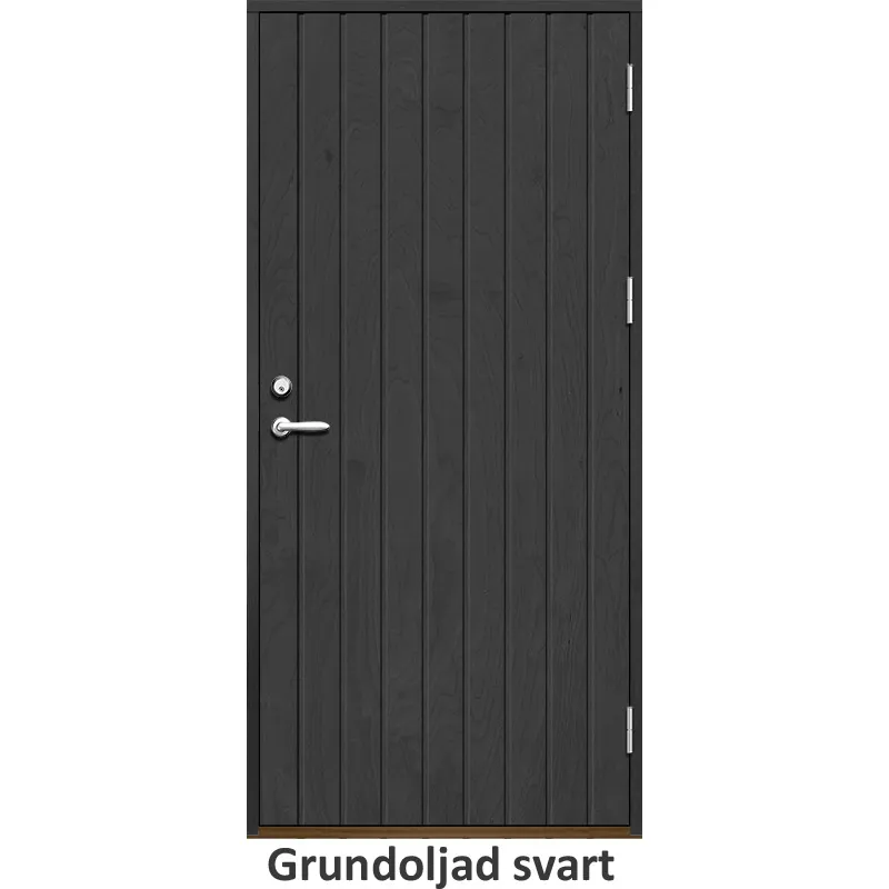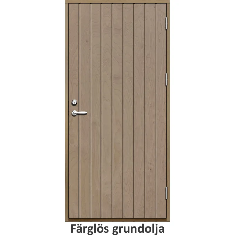 Ytterdörr med utvändiga skivor av HDF med tät stående spårning i 21 graders utförande.Med kraftig ko..