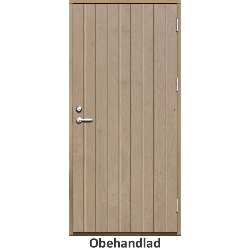 Ytterdörr (Inåtgående) med utvändiga skivor av HDF med tät stående spårning.Med kraftig konstru..