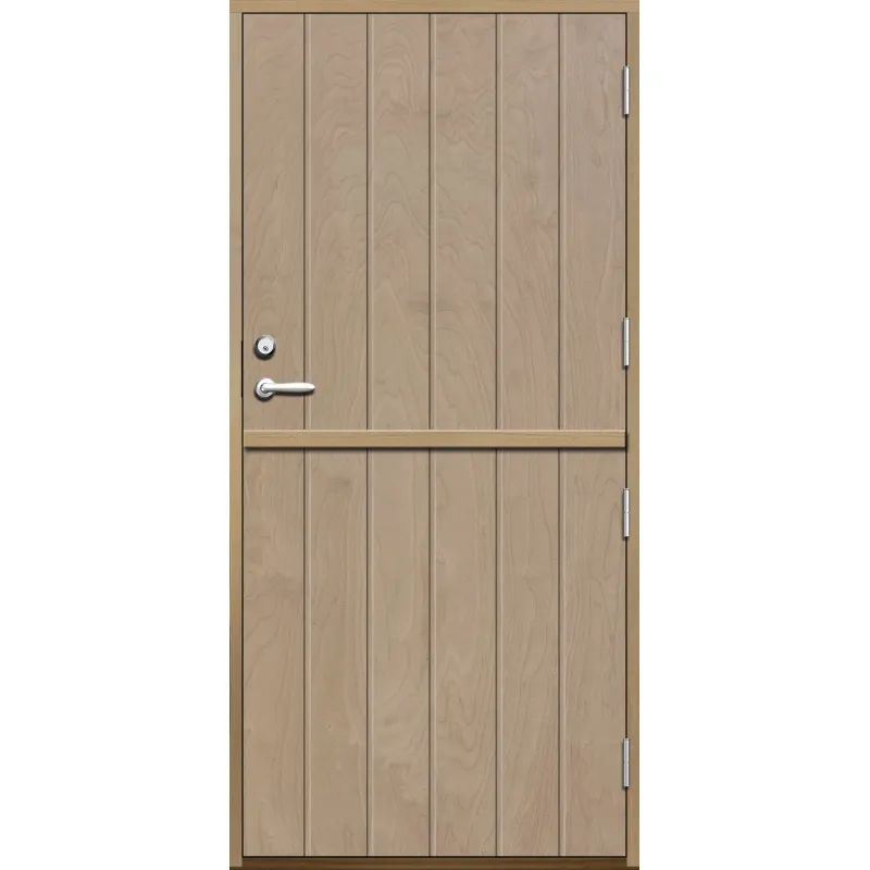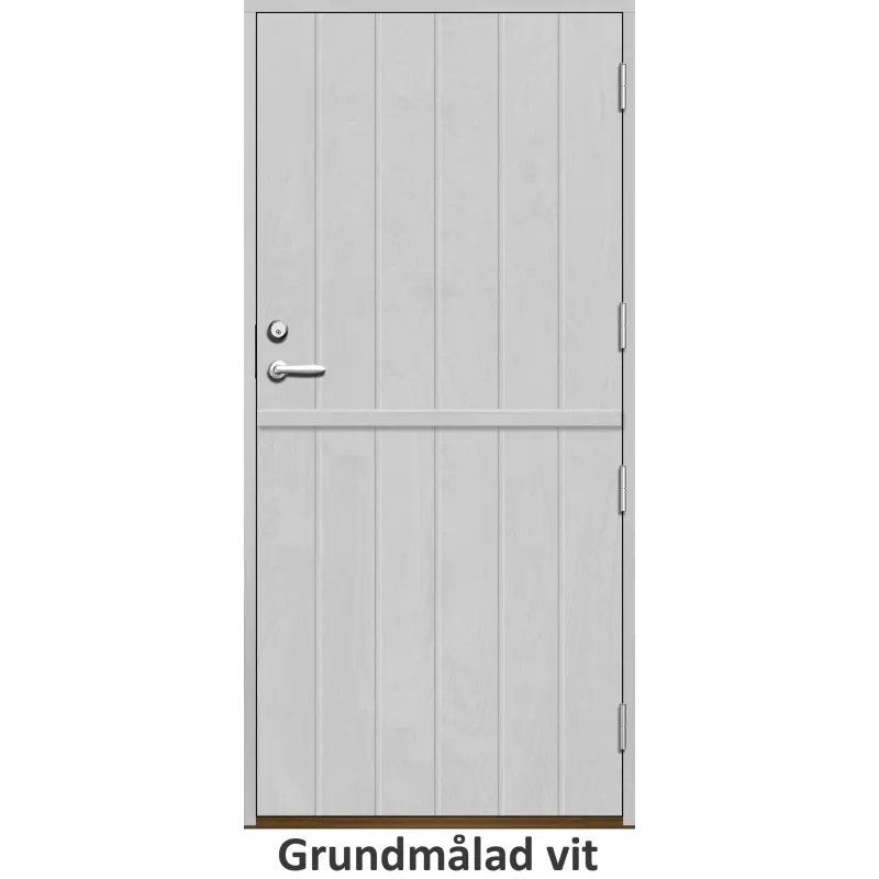 Ytterdörr med utvändiga skivor av HDF med bred stående spårning i 21 graders utförande.Med kraftig k..