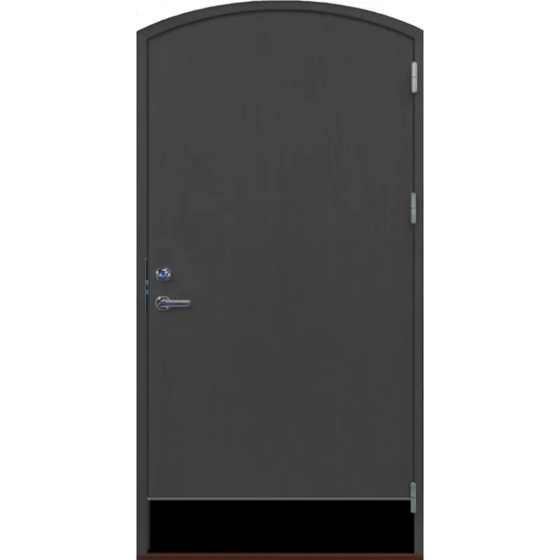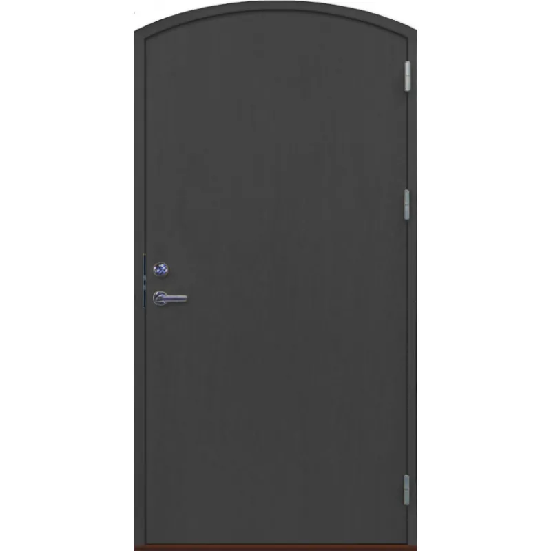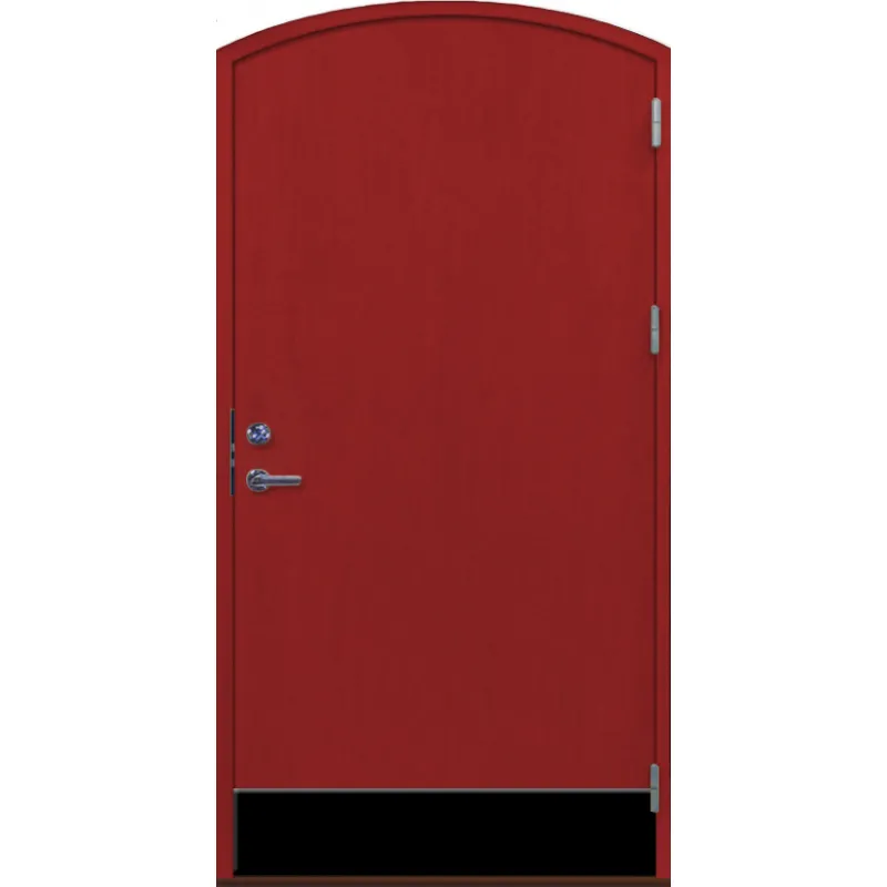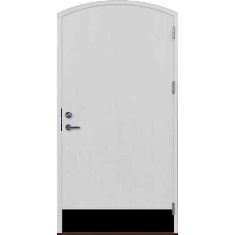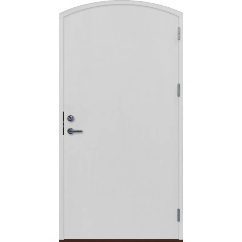 Förrådsdörr i valvat utförande med slät yta med hela 50 mm isolering till uppvärmda förråd, en så kallad varmförrådsdörr.