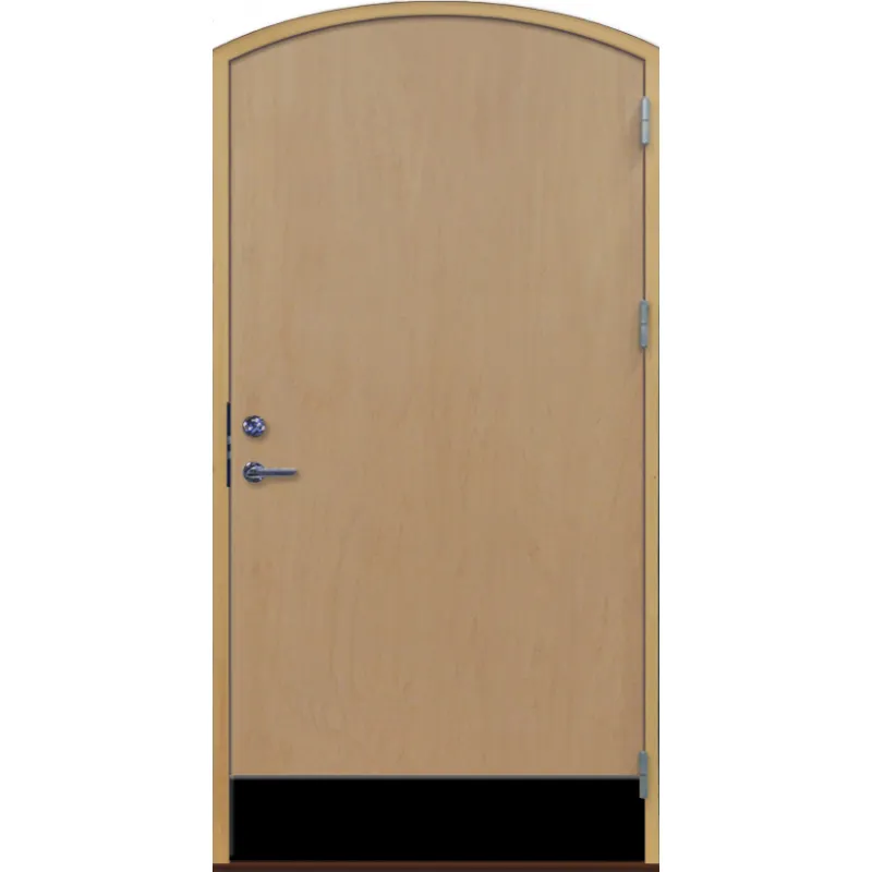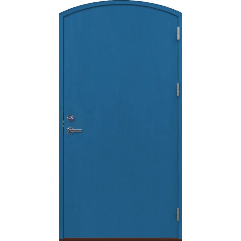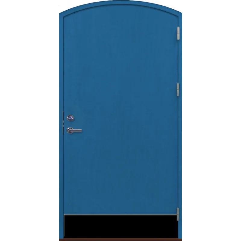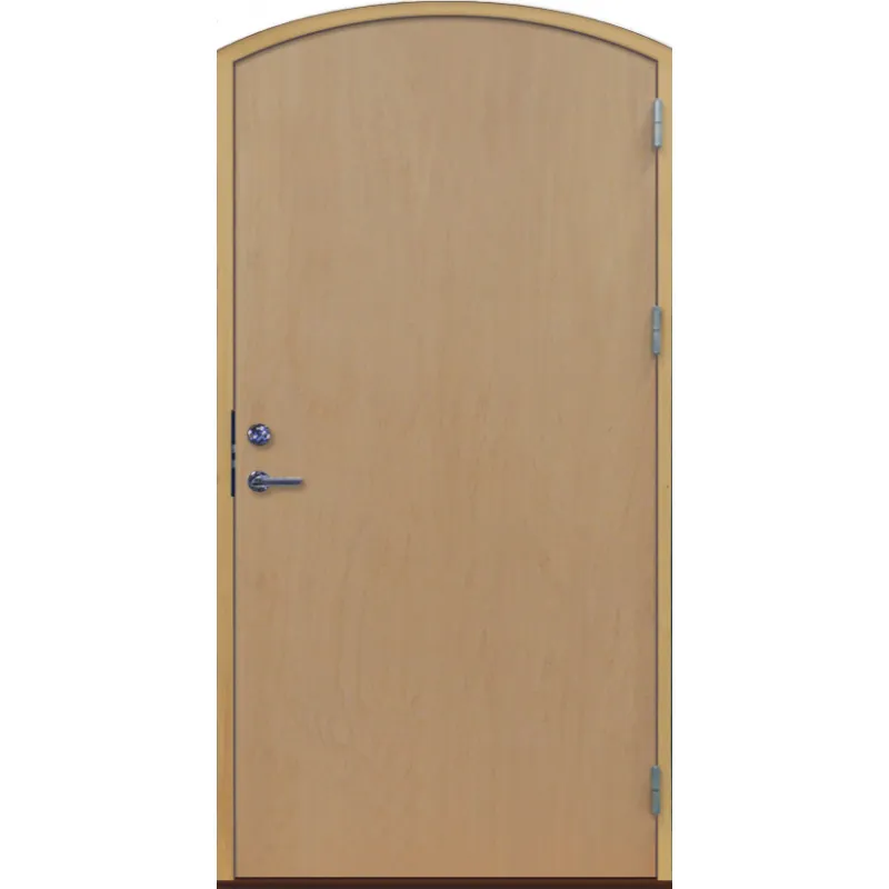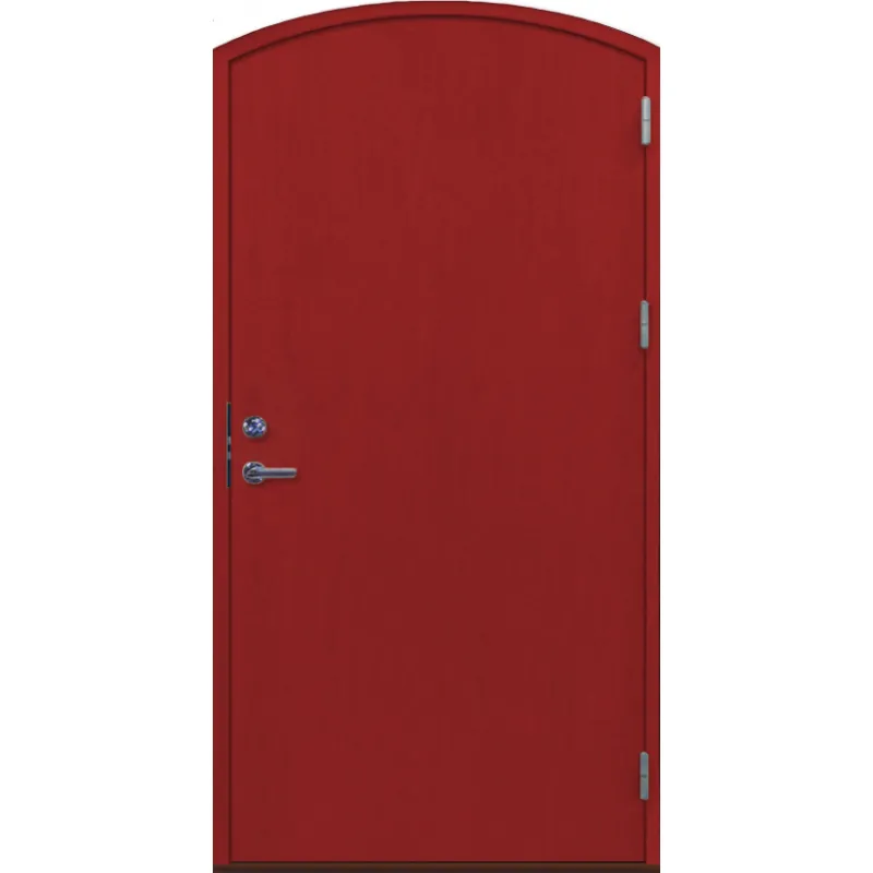 Förrådsdörr i valvat utförande med slät yta med hela 50 mm isolering till uppvärmda förråd, en så kallad varmförrådsdörr.