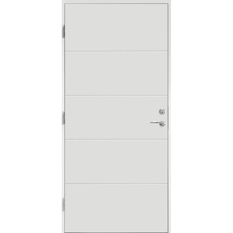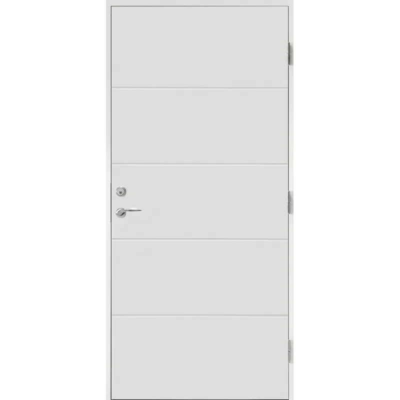 Levereras komplett inklusive tillhörande massivkarm och falsad tröskel samt låskista ASSA 565.