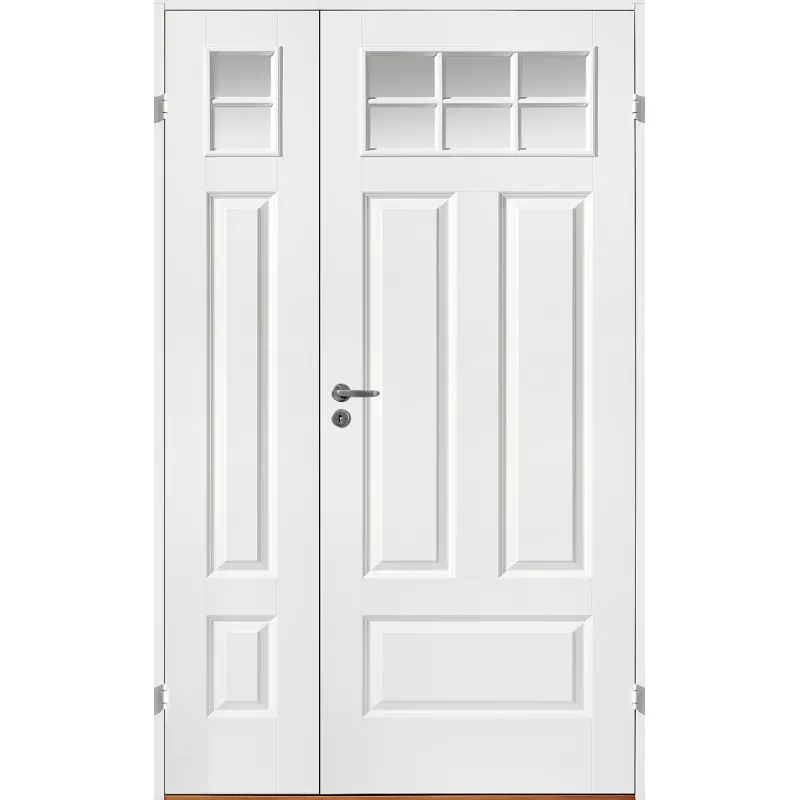 Svensktillverkad vitlackerad parinnerdörr kompaktutförande med stort glasparti och spröjs som ger 12..