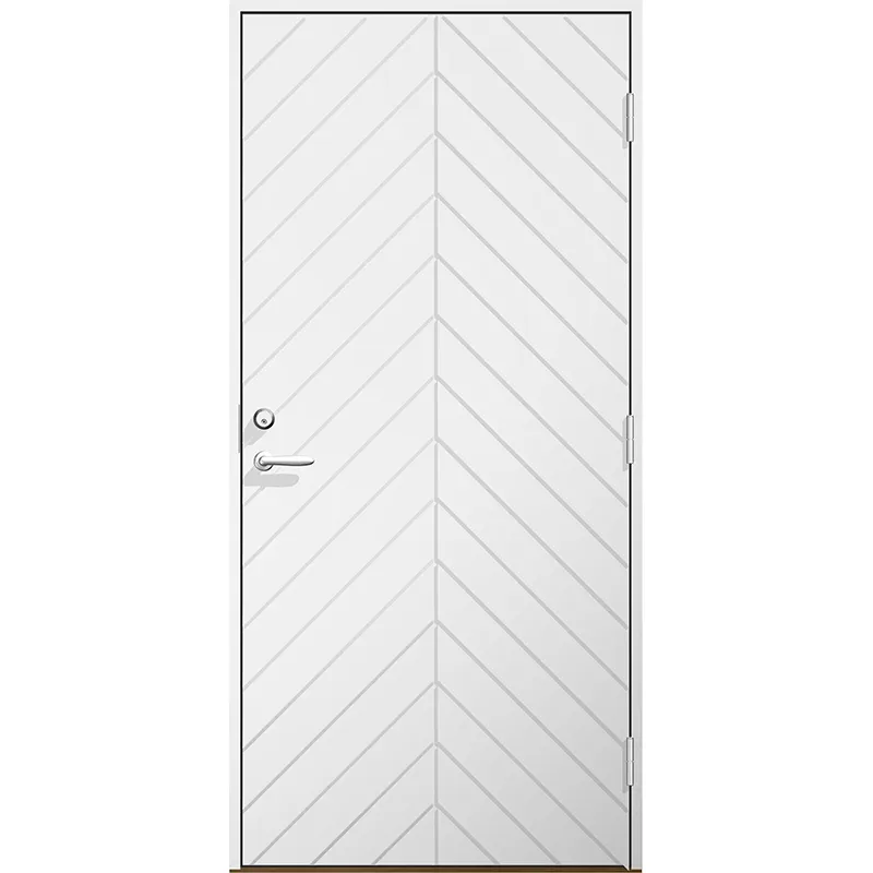 Ytterdörr med utvändiga skivor av HDF med fiskben spårning i 21 graders utförande.Med kraftig konstr..