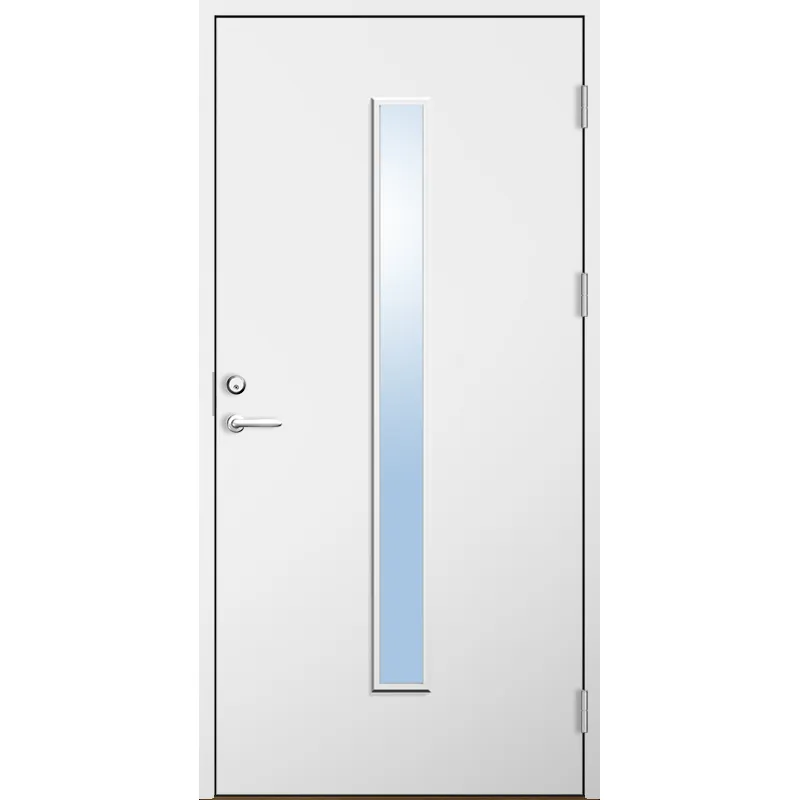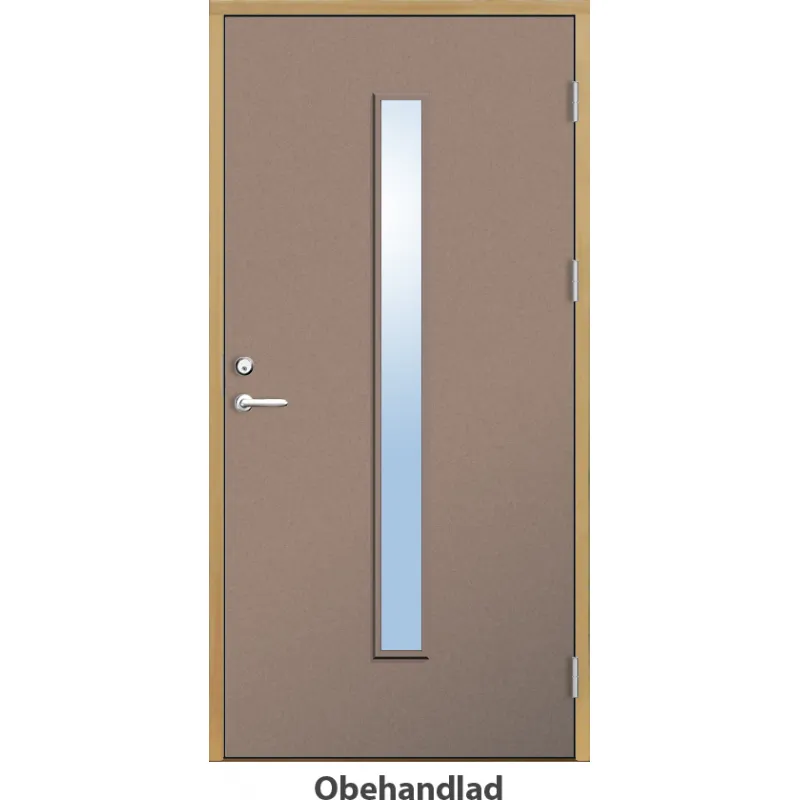 Förrådsdörr med slät yta och glas i 18 graders konstruktion.Med kraftig konstruktion, tjocka dörrbla..