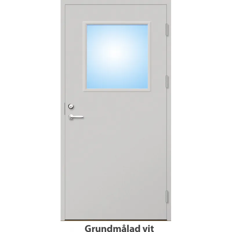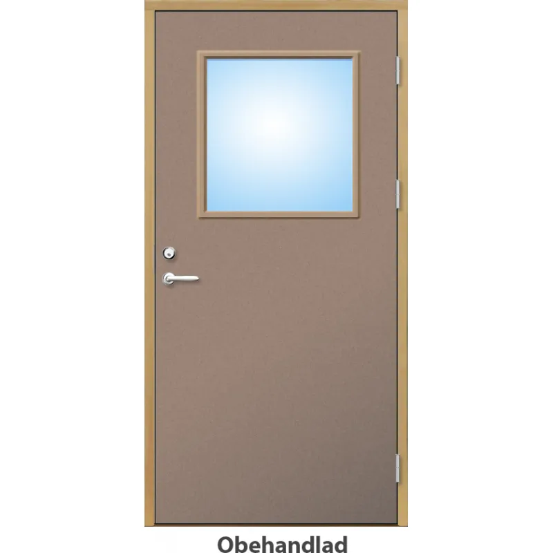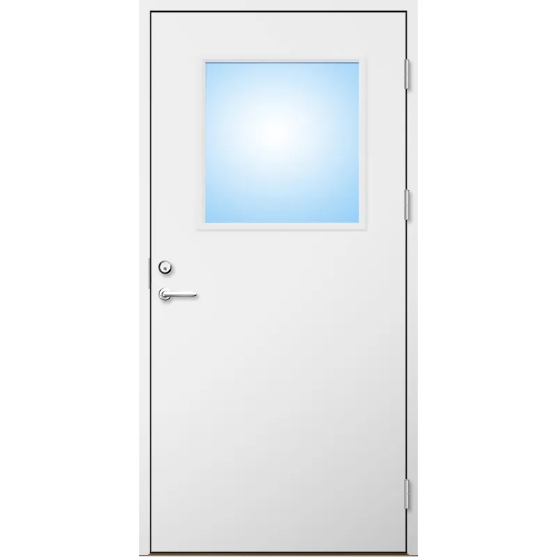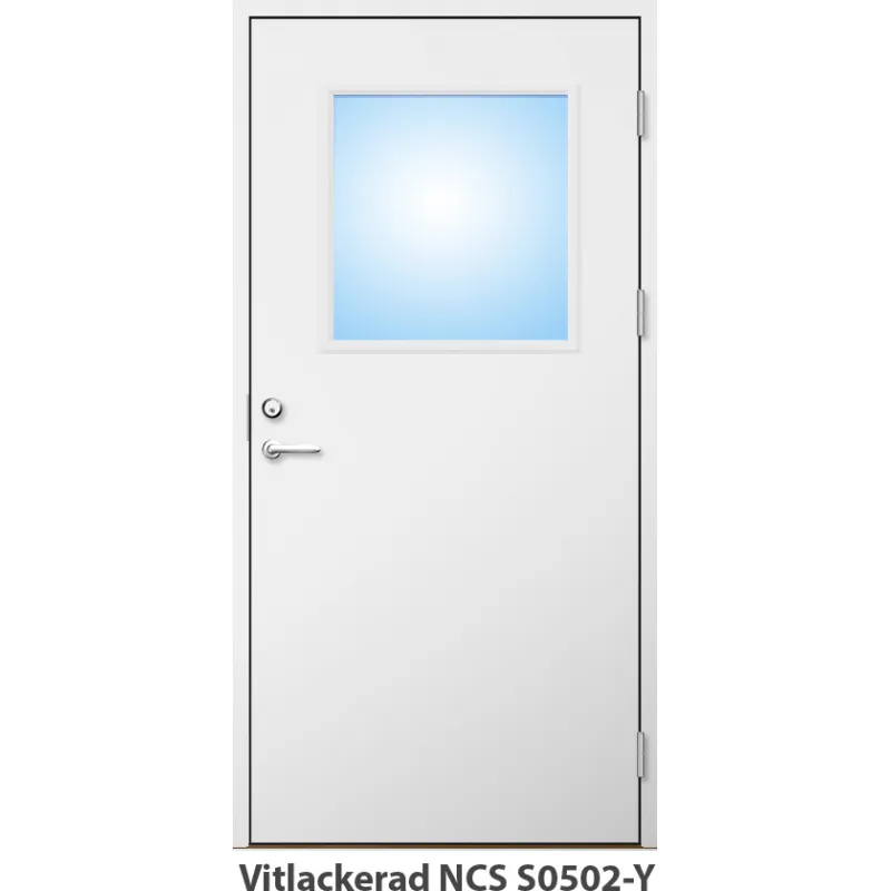 Förrådsdörr med slät yta och glas i 18 graders konstruktion.Med kraftig konstruktion, tjocka dörrbla..