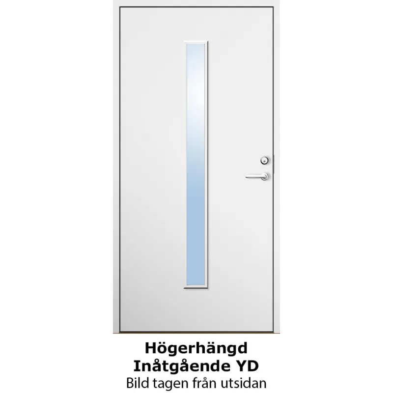 Om gångjärnen ska vara på höger sida när du öppnar dörren mot dig så är det en högerhängd ytterdörr du ska välja.
