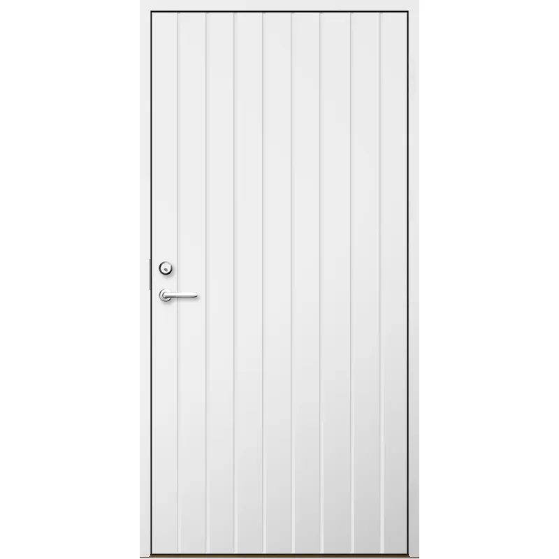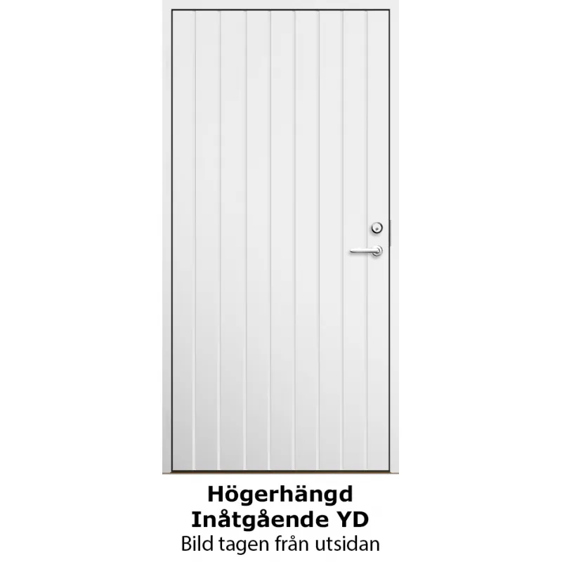 Ytterdörr (Inåtgående) med utvändiga skivor av HDF med tät stående spårning.Med kraftig konstru..