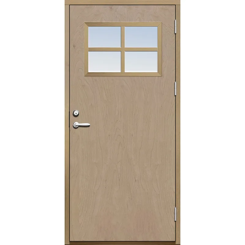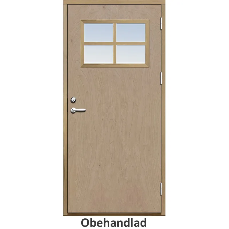 Förrådsdörr med slät yta och glas i 18 graders konstruktion.Med kraftig konstruktion, tjocka dörrbla..