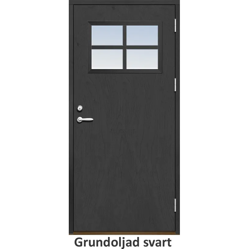 Ytterdörr med slät yta och kvadratiskt eller rektangulärt glas med spröjs.