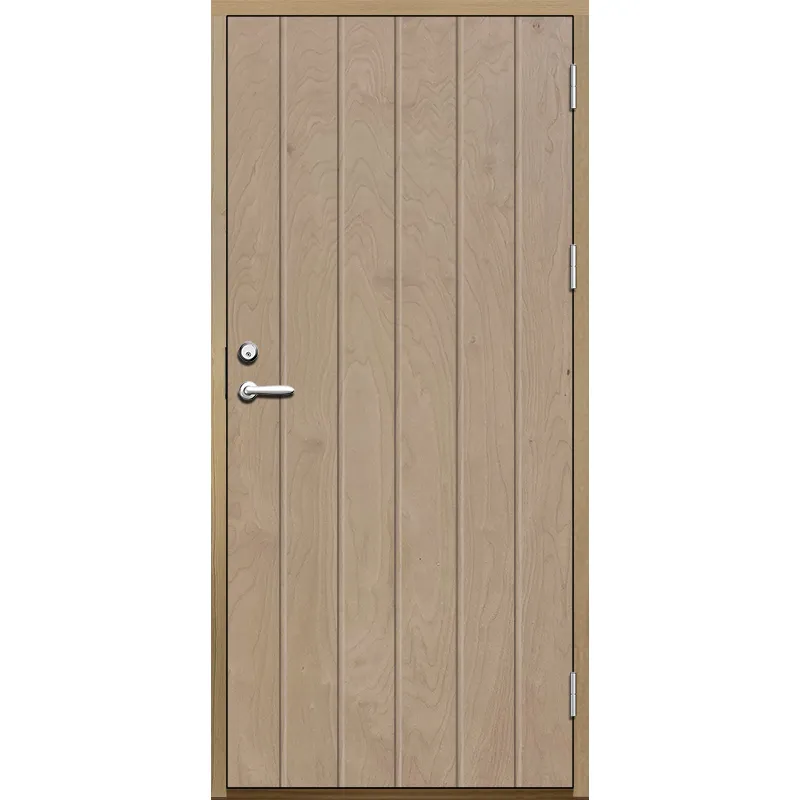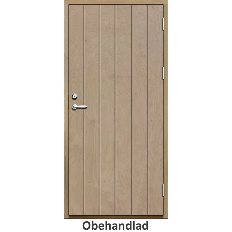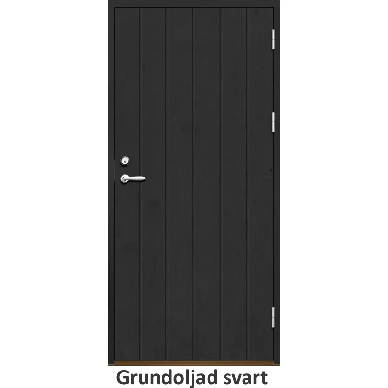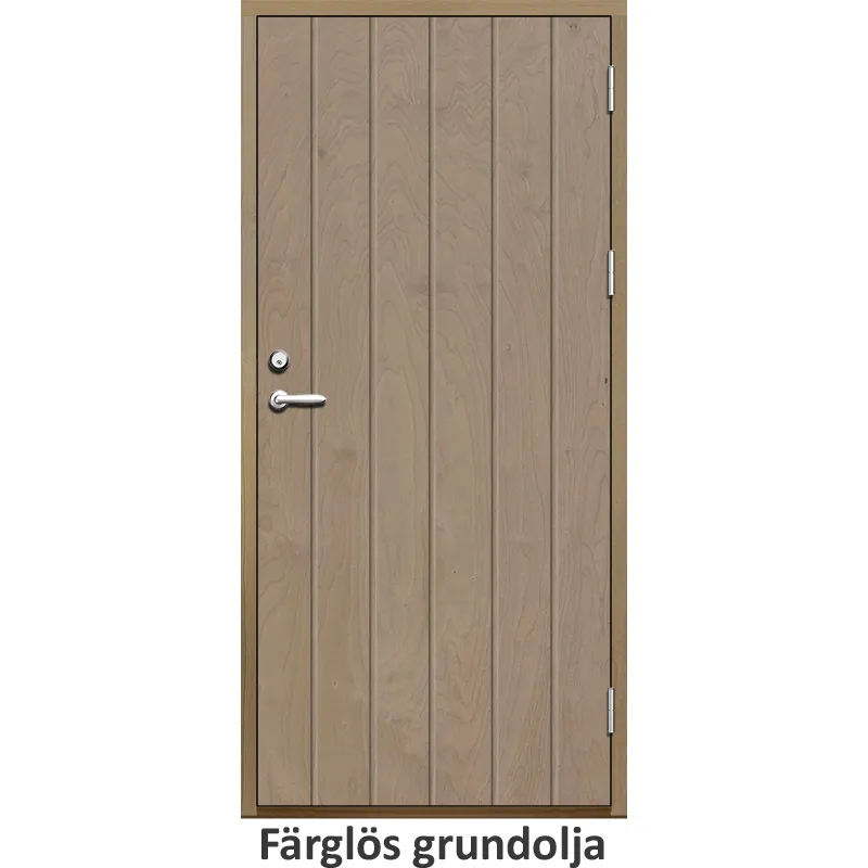 Ytterdörr med utvändiga skivor av HDF med bred stående spårning i 21 graders utförande.Med kraftig k..