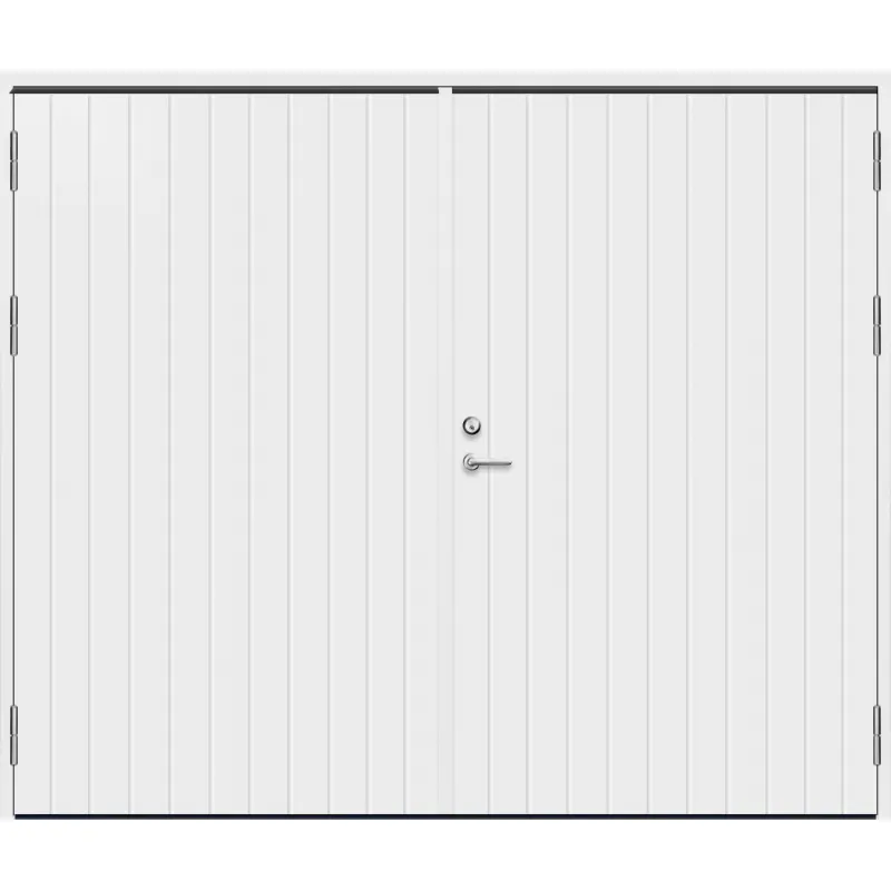Med kraftig konstruktion, tjocka dörrblad på 59 mm, dubbla aluminiumplåtar och 50 mm isolering för att klara uppvärmda garage och förråd.