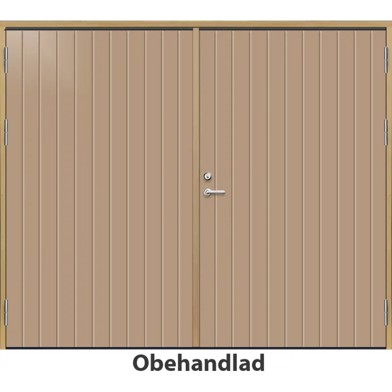 Parförrådsdörr med utvändiga skivor av HDF med tät stående spårning i 18 graders utförande.Med kraft..