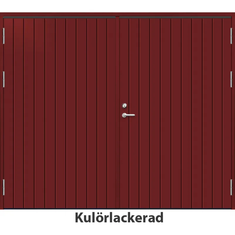 Slagport med tät stående spårning, rejäla dörrblad på 62 mm och 50 mm isolering i 10 graders utföran..