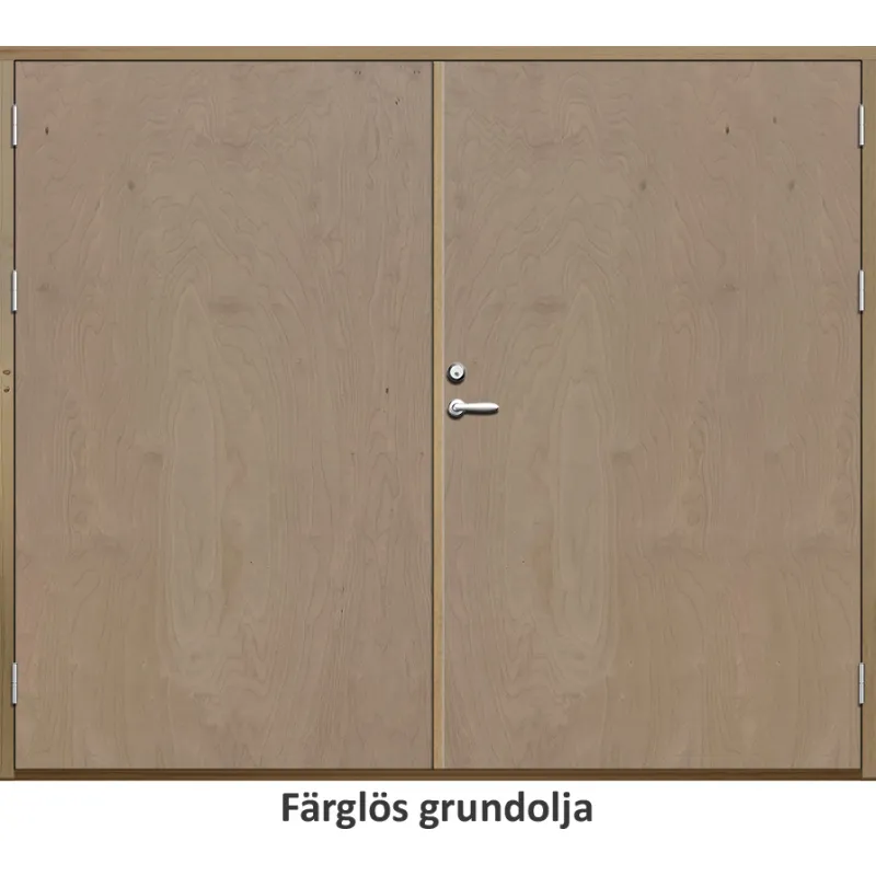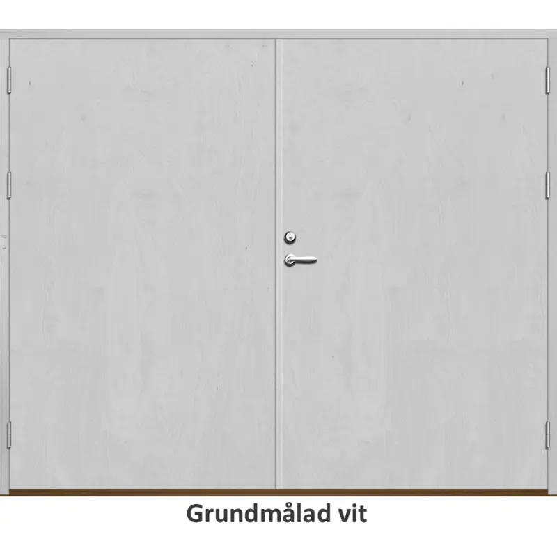 Parförrådsdörr med utvändiga skivor av HDF med slät yta i 18 graders utförande.Med kraftig konstrukt..