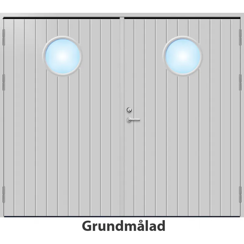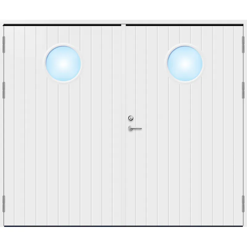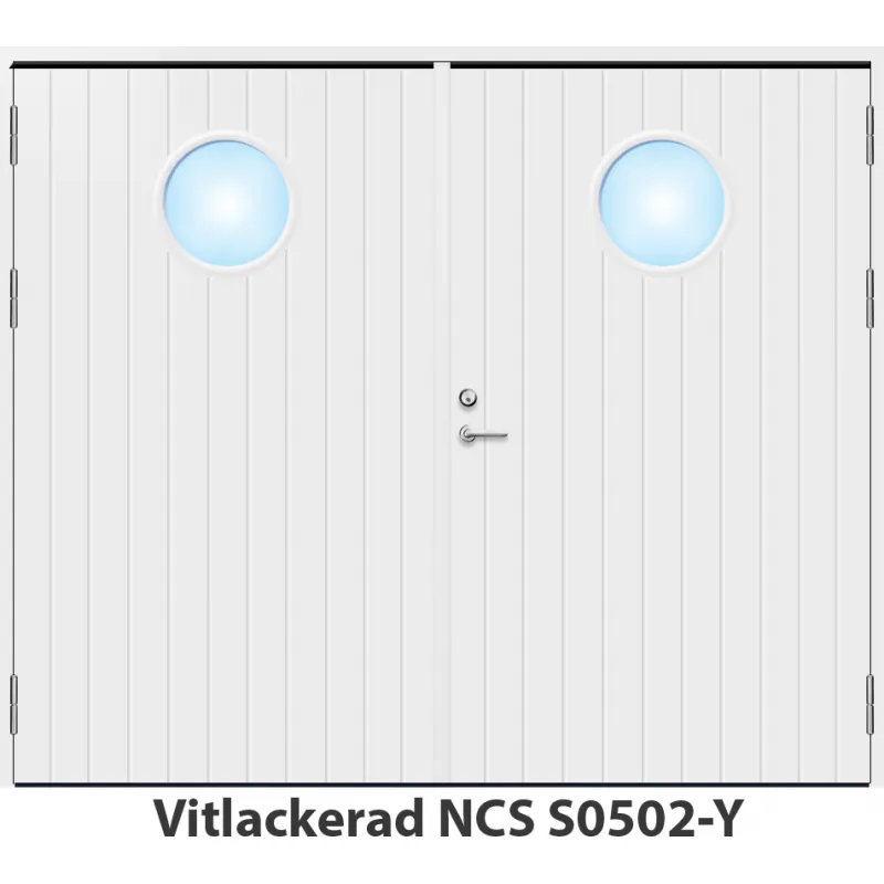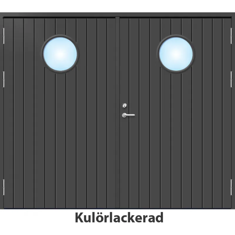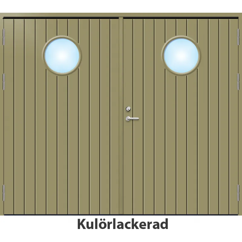 Förrådsdörr med tät stående spårning och runt glas i 10 graders utförande.Med kraftig konstruktion, ..
