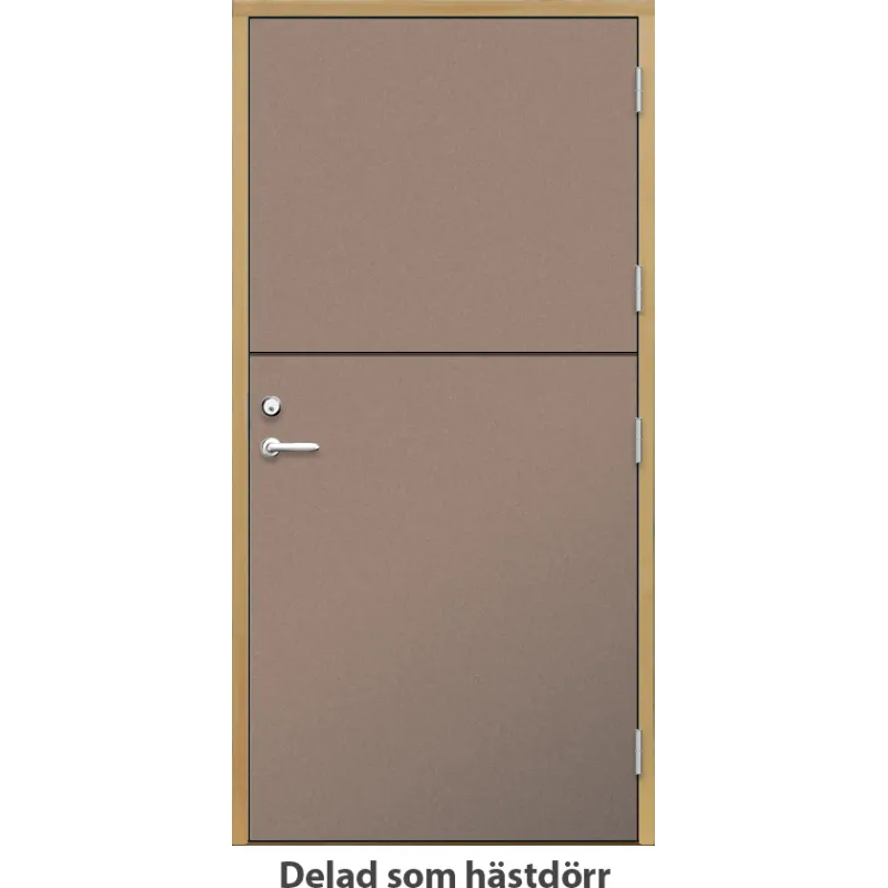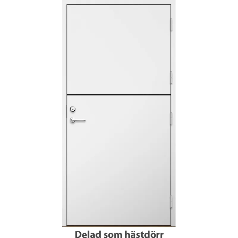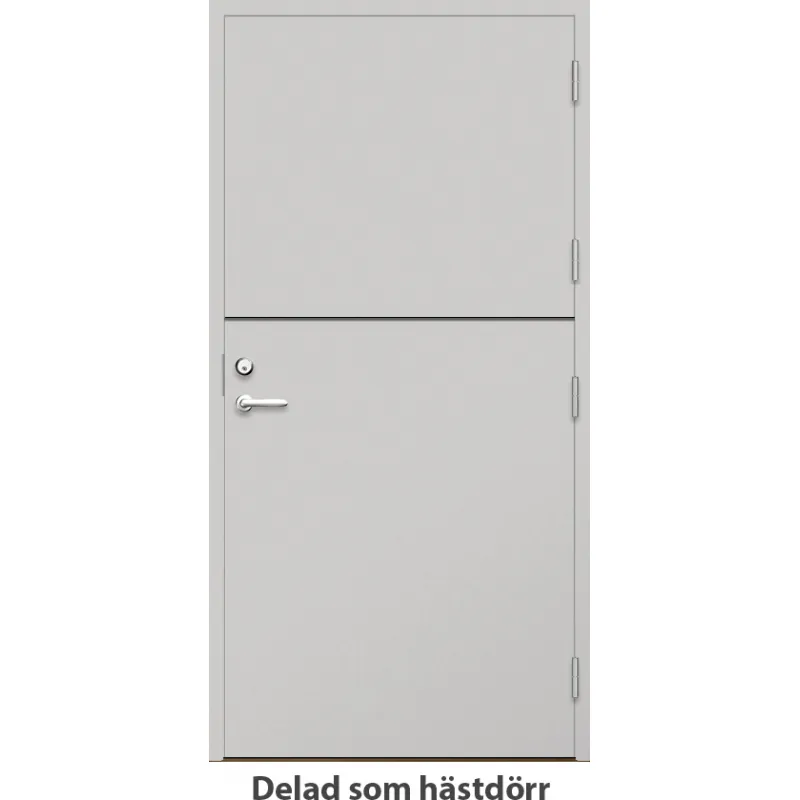 Stallpardörr med utvändiga skivor av HDF med slät yta.Med kraftig konstruktion, tjocka dörrblad på 6..