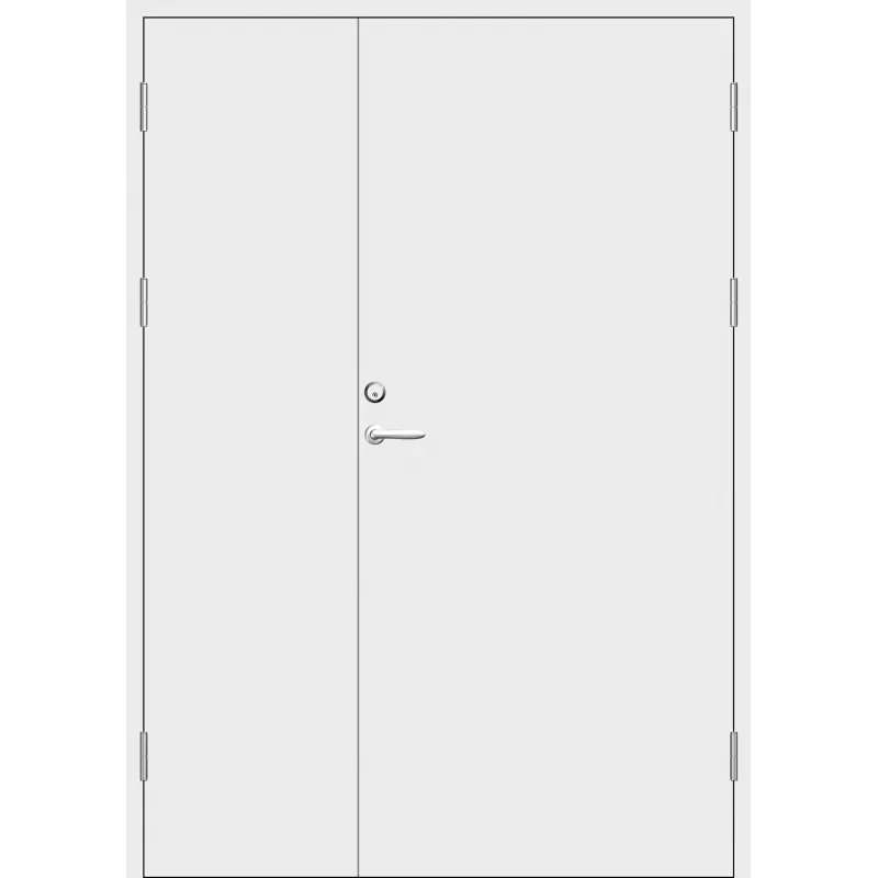 Stallpardörr med utvändiga skivor av HDF med slät yta.