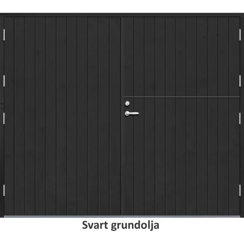 Stallpardörr med utvändiga skivor av HDF med tät stående spårning. (ca 100 mm C/C mellan spåren)Med ..